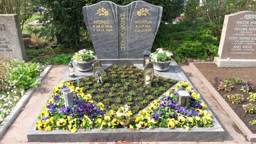 So wird der Besuch auf dem Friedhof ein besinnlicher und angenehmer Ausflug und es besteht kein Druck, dort gärtnerisch tätig zu werden oder in heißen Sommermonaten regelmäßig zum Gießen auf den Friedhof zu gehen. Der jeweiligen Saison entsprechend präsentieren wir jederzeit ein schön hergerichtetes Grab.